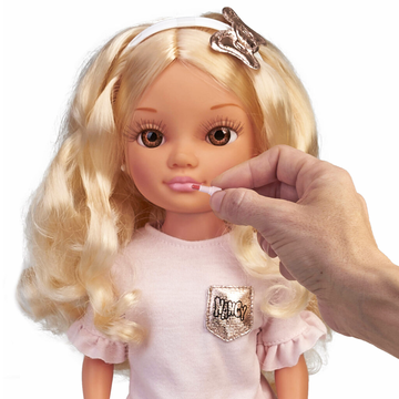 Nancy, a day of beauty is a wonderful complete modern set of make up and hair accessories for Nancy. It brings more than +18 accessories to make up and comb the doll creating different looks on Nancy. It includes stickers! Nancy with long blond hair, wears a metallic gold casual short with a pink t-shirt, one of the last trend in fashion. She is really pretty with a butterfly diadem full of glitter. Girls will spend hours playing with their doll.