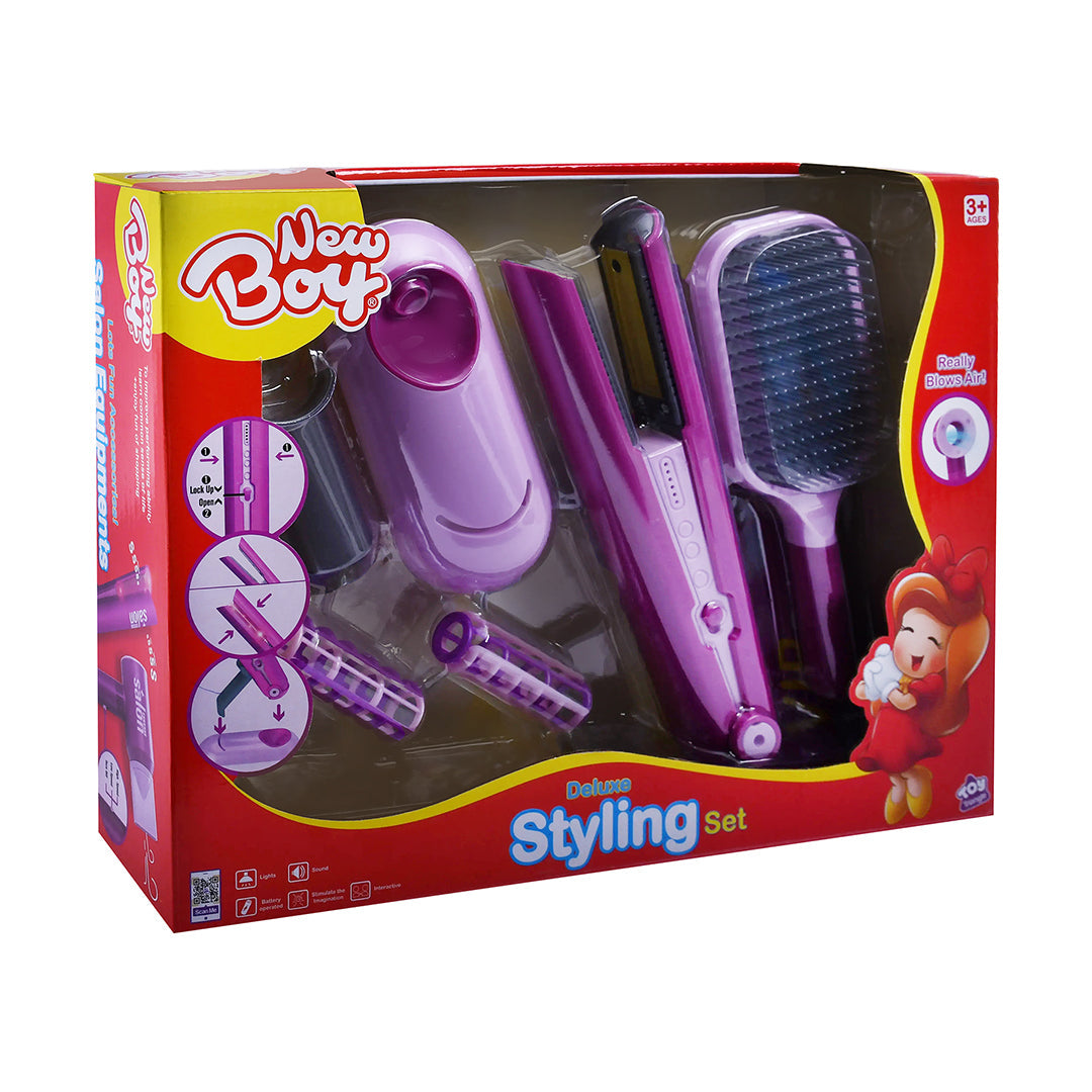 Introducing the New Girl Deluxe Styling Set Hair Straightener - the perfect toy for little ones to explore the world of hair styling and creativity. This set includes a battery-operated Hair Straightener, comb, and hair clips, providing endless opportunities for imaginative play. Crafted from durable and safe materials, this set is designed to last through hours of fun and play. Let your child's creativity shine as they develop fine motor skills and hand-eye coordination with this exciting role-playing toy set, perfect for salon-themed scenarios. Let the fun and learning begin for children aged 3 and above with the New Girl Deluxe Styling Set Hair Straightener!