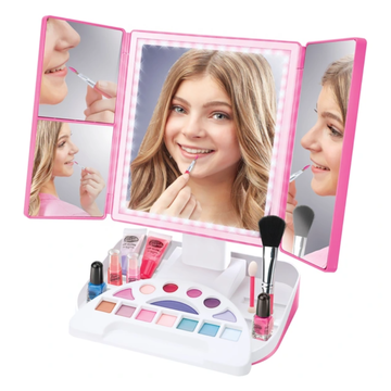 Light Up Magnifying Vanity. Makes Makeup Application Fun And Effortless With A Light Up Mirror, Enhancing Mirrors, Real Cosmetics In A Storage Caddy Base. Take Your Makeover Experience To The Next Level.